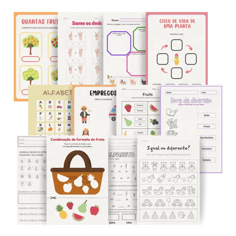 Uma biblioteca completa com atividades prontas para imprimir, lúdicas e organizadas por tema: